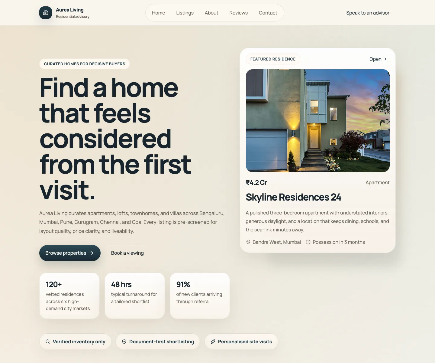 A calmer alternative to cluttered property portals, built to help buyers narrow options and enquire with better context.